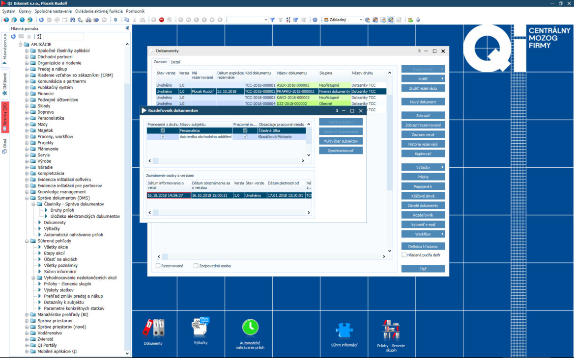 Firemné dokumenty majú v QI svoje pevné miesto. DMS ich pomáha prehľadne evidovať, efektívne triediť a rýchlo nájsť presne to, čo potrebujete. Odstránite zbytočnú administratívu, zlepšíte prístup ku kľúčovým informáciám a vždy budete mať istotu, že pracujete s aktuálnou verziou.