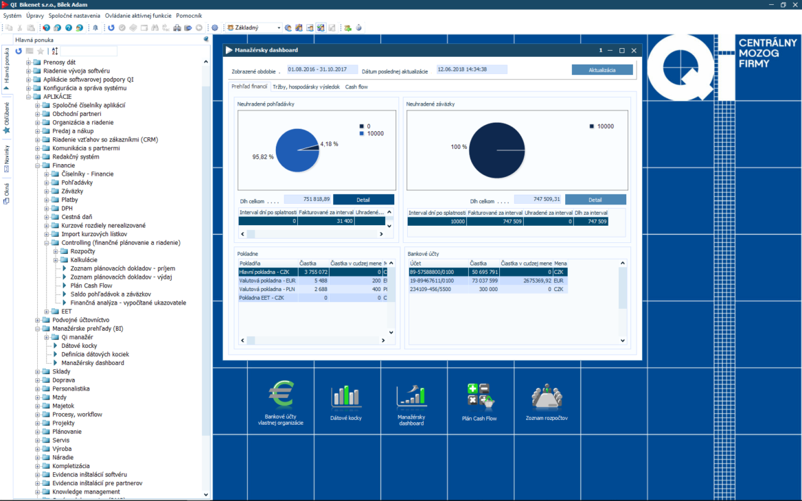 Finanční riaditelia rozhodujú s istotou. Využijú rôzne reporty aj manažérsky dashboard. Majú prehľad o cash flow, nákladoch, výnosoch a ziskoch. Účtovný modul pomôže so spracovaním pohľadávok, záväzkov, zápočtov, platieb, faktúr aj dobropisov. Rovnako zabezpečí elektronickú komunikáciu s bankami a správu účtov.