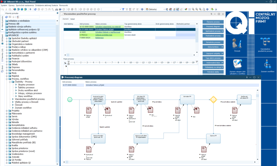 Aby Vaše produkty a služby obstáli pred konkurenciou, je potrebné optimálne nastaviť pracovné postupy. Preto buďte o krok vpred a pripravte si osvedčené firemné procesy vopred. Riadenie firmy dostane nový rozmer. S modulom Procesy a workflow, ktorý je súčasťou informačného systému QI, stačí šablóny všetkých úloh pripraviť raz, QI ich štruktúry uchová a zabezpečí, aby boli informácie odovzdané v správnom čase a poradí konkrétnom realizátorom. Chod firmy bude lepšie kontrolovateľný a spoľahlivosť firemných postupov sa zvýši na maximum.